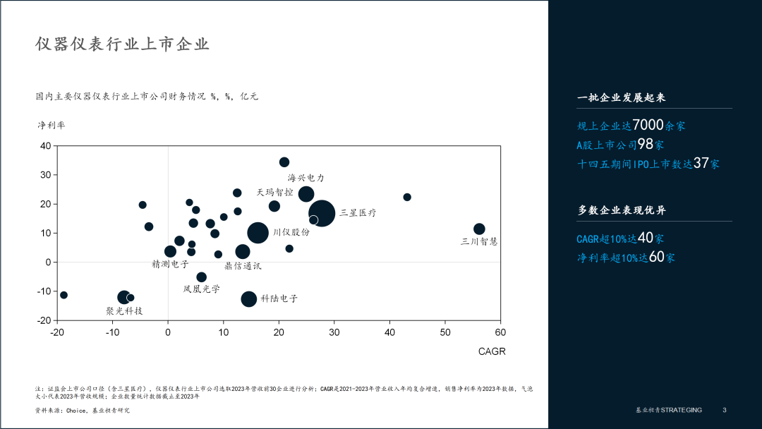 ? 規(guī)模發(fā)展機(jī)遇。儀器儀表是典型的大市場、小細(xì)分、多產(chǎn)品、多應(yīng)用的市場,企業(yè)成長壯大的核心邏輯是“持續(xù)擴(kuò)品”。借鑒領(lǐng)先,儀器儀表企業(yè)需要通過將技術(shù)與產(chǎn)品模塊化組合,持續(xù)豐富高新技術(shù)和量大面廣產(chǎn)品的開發(fā)與生產(chǎn)。比如基恩士2023年在全球銷售額達(dá)9224億日元,在中國銷售的產(chǎn)品有13大類、46小類、幾百個型號,但從技術(shù)路線來婆媳,都是基于光電技術(shù)和圖像技術(shù)兩條核心技術(shù)路線。在擴(kuò)品的同時,儀器儀表企業(yè)還應(yīng)通過完善銷售服務(wù)網(wǎng)絡(luò)、升級解決方案型服務(wù)模式等加大市場開拓,提升產(chǎn)品市占率,頭部企業(yè)還應(yīng)對國際市場有所開發(fā)。