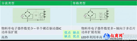 相比之下,旁路類型傾向于使用多個(gè)集成電路,因而導(dǎo)致更高的BOM成本。而這種方法更適合于需要許多LED串的應(yīng)用。與分流法相比,雖然擴(kuò)展性有限,但電氣性能更好,總諧波失真(THD)通常小于10%,而分流法為30%左右。