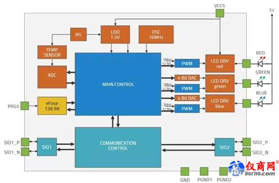 12bit PWM調(diào)制,支持紅色通道的溫度補(bǔ)償;