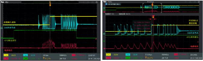 就此看來,全占空比調(diào)光范圍內(nèi),線性度還是極好的。在每個AFG驅(qū)動的PWM周期,SW都可以快速的響應,電流達到預設值無過充。