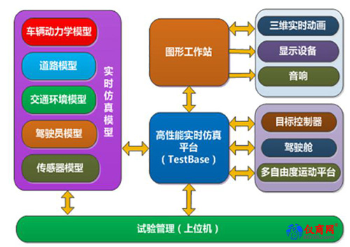 基于駕駛員在環(huán)(DIL,Driver In the Loop)技術(shù)的主動安全測試系統(tǒng)是用于研究、測試、分析和重現(xiàn)“人-車-路-交通”在實(shí)際車輛駕駛中的相互作用的新型測試系統(tǒng)。系統(tǒng)基于實(shí)時仿真技術(shù)開發(fā),實(shí)現(xiàn)了對車輛、道路和交通環(huán)境的模擬,搭建了高性能實(shí)時動態(tài)閉環(huán)測試環(huán)境,結(jié)合真實(shí)駕駛員的實(shí)際操作和感受,為主動安全系統(tǒng)開發(fā)提供了有力支持。