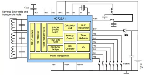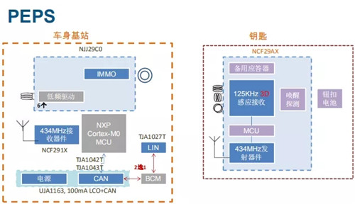 5、IMMO驅(qū)動(dòng)及通訊控制器:智能鑰匙沒電時(shí),將智能鑰匙靠近IMMO線圈,通過互感充電,可以實(shí)現(xiàn)低頻認(rèn)證,認(rèn)證通過后可實(shí)現(xiàn)緊急啟動(dòng)。