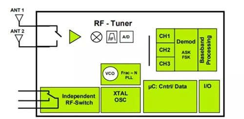 差分信號(hào),BCM和IMMO距離可達(dá)3M,同時(shí)集成了125KHz的低頻驅(qū)動(dòng),IMMO高達(dá)1Ap驅(qū)動(dòng)電流,和Token配合使用時(shí)感應(yīng)距離可達(dá)8cm;