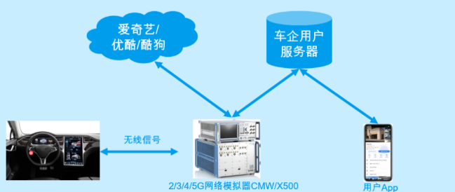 2、提供基于IP的理想測試環(huán)境供客戶定制測試內(nèi)容,比如汽車應(yīng)用通過CMW/CMX500網(wǎng)絡(luò)模擬器連接第三方服務(wù)網(wǎng)站如愛奇藝,用戶手機(jī)APP通過CMW/CMX500訪問汽車等;