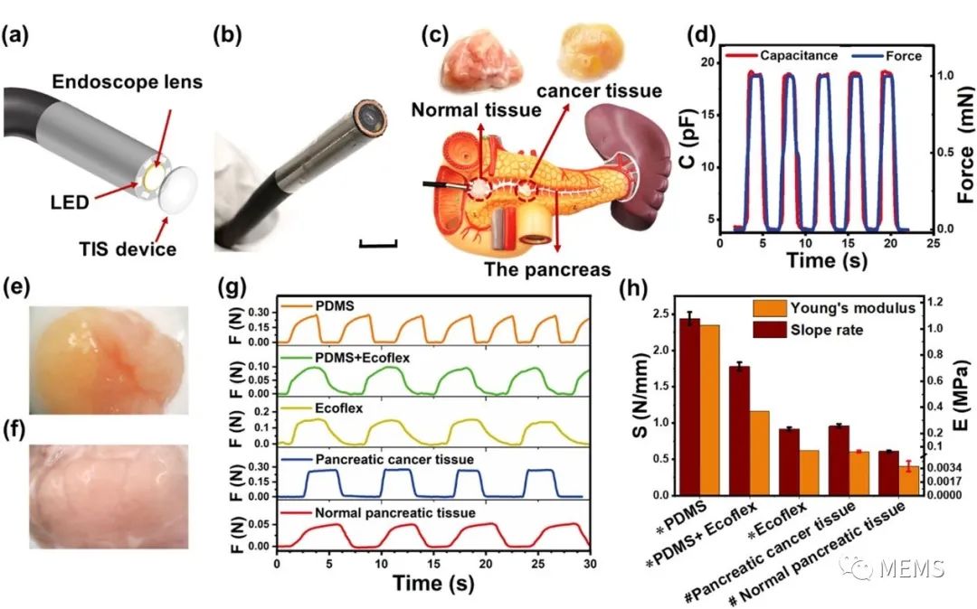 小型化的TIS傳感器可以直接組裝在內(nèi)窺鏡鏡頭上,使內(nèi)窺鏡獲得了光學(xué)成像和觸覺感知的雙重功能,一方面避免了內(nèi)窺檢查時(shí)對(duì)軟組織的意外損傷,一方面可通過壓力數(shù)據(jù)來計(jì)算機(jī)體組織的硬度,用來輔助判斷病變程度。柔軟的TIS傳感器也可以直接將貼于皮膚表面,以隱形的方式采集包括脈搏波、呼吸、運(yùn)動(dòng)等生理參數(shù),為醫(yī)學(xué)健康診斷提供重要數(shù)據(jù)。因此,高透明、高靈敏特性和優(yōu)秀的集成性使得TIS在消費(fèi)電子、工控和醫(yī)療設(shè)備等的領(lǐng)域上具有潛在的應(yīng)用前景。
