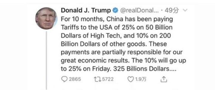 近日,美國總統(tǒng)唐納德·特朗普發(fā)布推特:5月10日起,美國將對價值2000億美元的中國商品的關(guān)稅稅率進(jìn)行調(diào)整,從原來的10%增加至25%。此外,未來美國或?qū)r值3250億美元的中國商品征收25%的關(guān)稅。