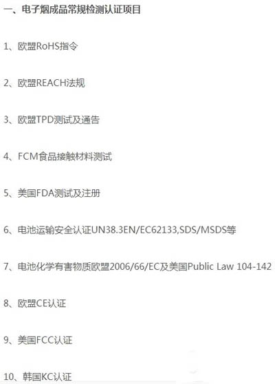 中國是電子煙的發(fā)明者和主要生產地,伴隨著電子煙市場的興起,檢測機構也紛紛推出電子煙檢測服務,由于目前國內電子煙檢測標準的“空白”現(xiàn)狀,檢測方法及依據(jù),多為國際相關標準或者參考傳統(tǒng)煙草檢測標準來制定自己的檢測項目。