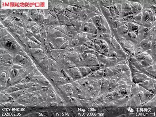 組圖4:實驗組3M顆粒物防護口罩的過濾層纖維結(jié)構(gòu)圖