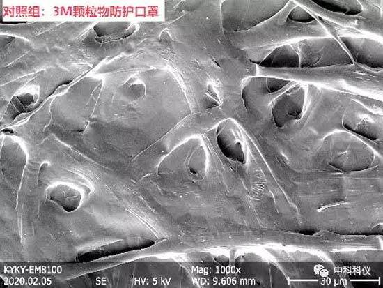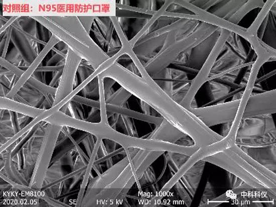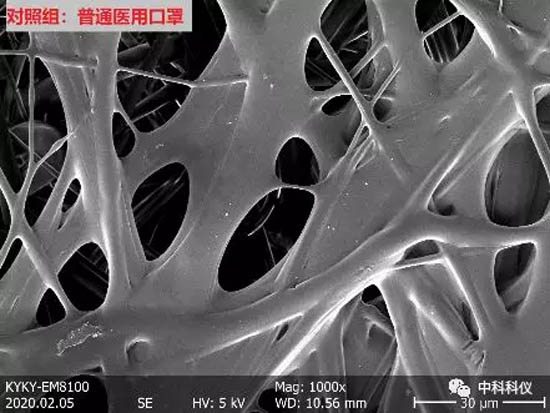 對照組:使用KYKY場發(fā)射槍掃描電鏡觀測三種口罩的熔噴無紡布過濾層,樣品未經(jīng)過任何處理。