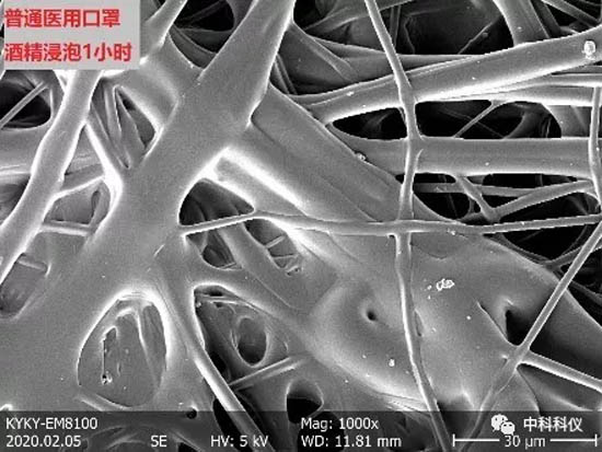 那么問題來了:日常的家庭消毒方法,如酒精浸泡和沸水高溫消毒法,會對熔噴無紡布的纖維結(jié)構(gòu)造成破壞或使其溶解嗎?小編依次進行了實驗,并通過KYKY場發(fā)射槍掃描電鏡對結(jié)果進行了觀測,我們一起來看看吧!