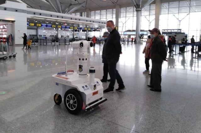 除了無人機(jī),作為安防之用的巡邏機(jī)器人和帶有紅外設(shè)備的服務(wù)機(jī)器人也能進(jìn)行人群測溫。