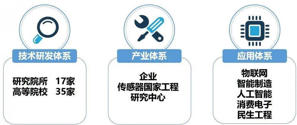 目前形成了以中科院研究所、國家重點(diǎn)實(shí)驗(yàn)室、高等院校為核心的研發(fā)體系。 以傳感器國家工程研究中心、企業(yè)為主體的產(chǎn)業(yè)體系。以物聯(lián)網(wǎng)、智能制造、人工智能、消費(fèi)電子、民生工程等為對(duì)象的應(yīng)用體系。