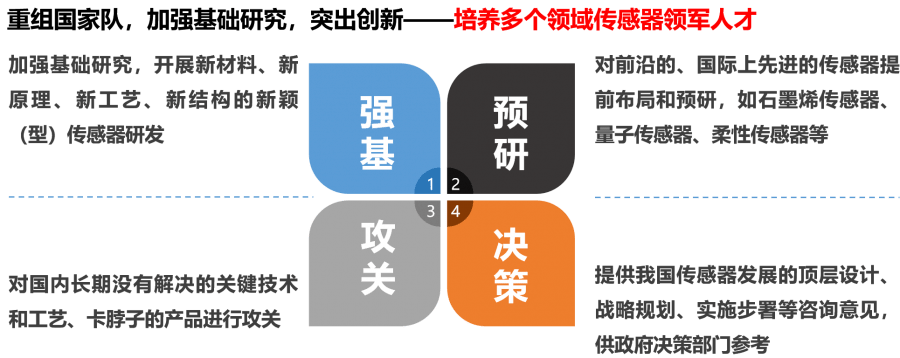 重組國家隊(duì),加強(qiáng)基礎(chǔ)研究,突出創(chuàng)新——培養(yǎng)多個(gè)領(lǐng)域傳感器領(lǐng)軍人才。