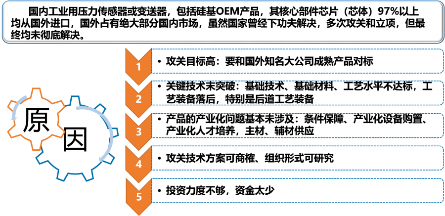 1、關(guān)鍵核心技術(shù)未能突破,產(chǎn)業(yè)化難點(diǎn)未能解決,高端核心傳感器依賴進(jìn)口。