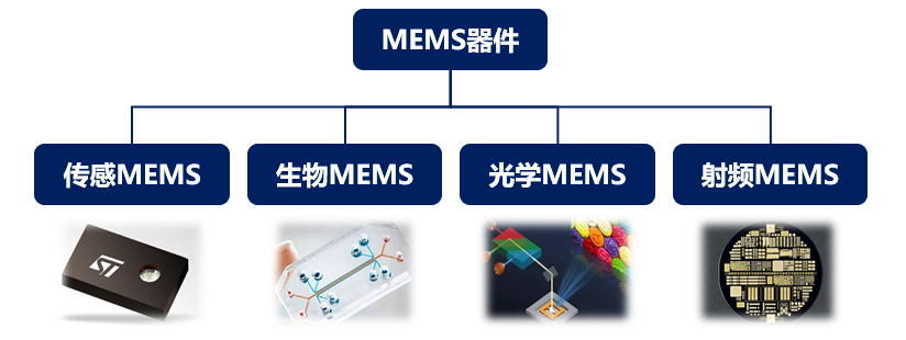 MEMS器件根據(jù)其技術(shù)原理可分為四類:傳感MEMS、生物MEMS、光學(xué)MEMS和射頻MEMS。