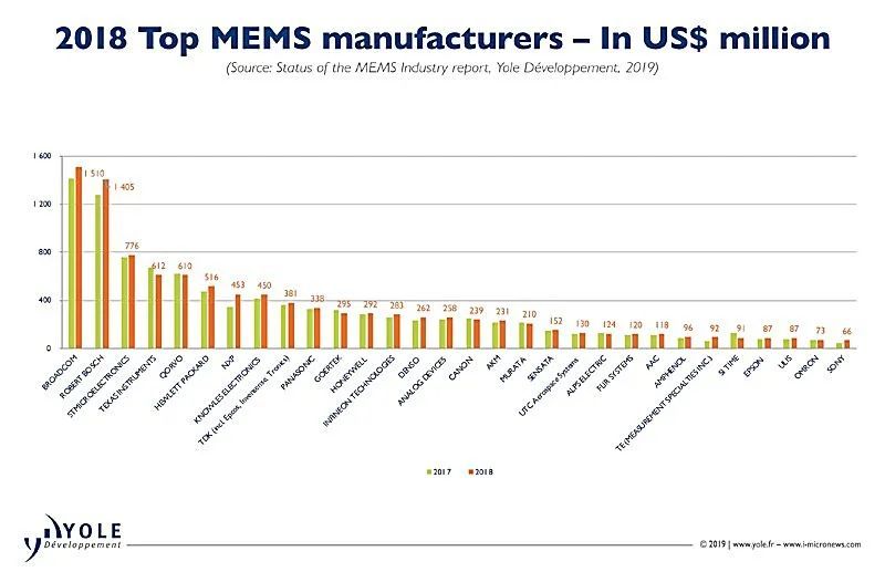 圖:2018年全球TOP30MEMS元件制造廠商 資料來源:Yole Development