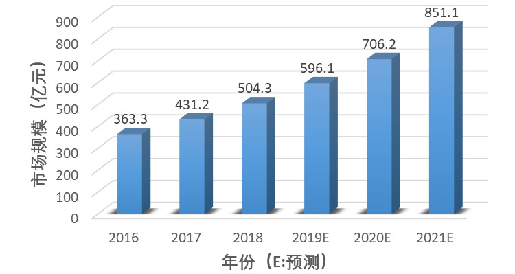 近年來,受益于消費(fèi)電子類產(chǎn)品,如智能手機(jī)、平板電腦等產(chǎn)量保持穩(wěn)定增長,帶動加速傳感器、陀螺儀、硅麥克風(fēng)等MEMS行業(yè)需求的增長,中國成為全球MEMS市場發(fā)展最快的地區(qū)。據(jù)賽迪智庫統(tǒng)計(jì),2018年中國MEMS整體市場規(guī)模達(dá)到504.3億元,預(yù)計(jì)到2021年將達(dá)到851.1億元。