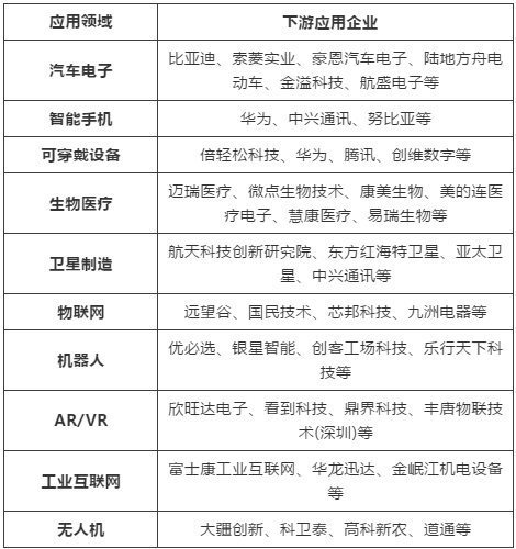 表:深圳市相關(guān)MEMS傳感器下游應(yīng)用企業(yè)
