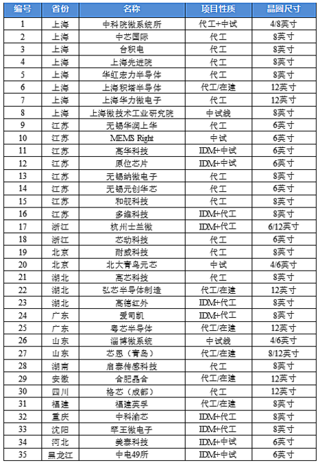 表:國內(nèi)MEMS晶圓產(chǎn)線分布情況