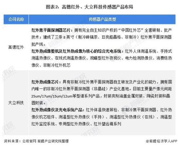 隨著科技的發(fā)展,傳感器早已滲透到諸如工業(yè)生產(chǎn)、宇宙開(kāi)發(fā)、海洋探測(cè)、環(huán)境保護(hù)、資源調(diào)查、醫(yī)學(xué)診斷、生物工程、甚至文物保護(hù)等等極其之泛的領(lǐng)域。目前,高德紅外和大立科技是中國(guó)傳感器行業(yè)紅外傳感產(chǎn)品的龍頭企業(yè),兩家企業(yè)在傳感器業(yè)務(wù)上的布局歷程如下: