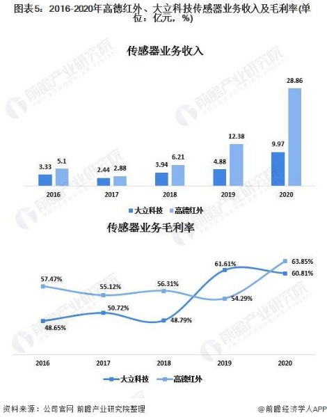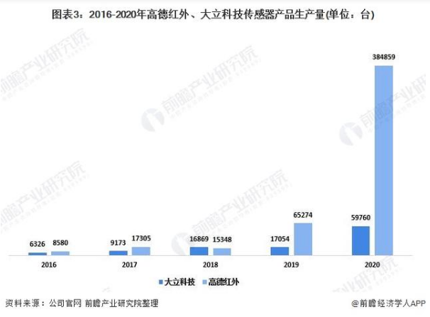 ——傳感器產(chǎn)品產(chǎn)銷(xiāo)量:高德紅外大幅領(lǐng)先