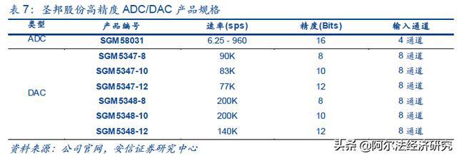 資料來源:圣邦股份ADC/DAC產(chǎn)品規(guī)格,券商研報,阿爾法經(jīng)濟研究