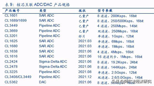 資料來源:核芯互聯(lián)ADC/DAC產(chǎn)品規(guī)格,券商研報,阿爾法經(jīng)濟研究
