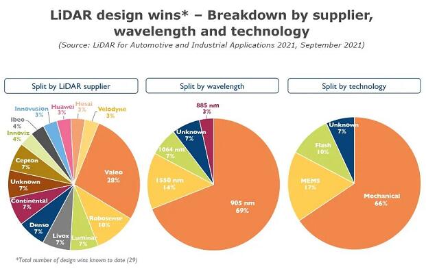 近日,全球知名市場研究與戰(zhàn)略咨詢公司Yole Developement發(fā)布《2021年汽車與工業(yè)領域激光雷達應用報告》。該報告統(tǒng)計了包括全球10余家頭部企業(yè)在內(nèi)的激光雷達研發(fā)制造商在汽車和工業(yè)市場應用的份額占比情況。