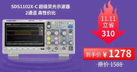 其中,高性價(jià)比2通道的SDS1102X-C超級(jí)熒光示波器原價(jià)1588元,雙十一立減310元,到手價(jià)僅為1278元。