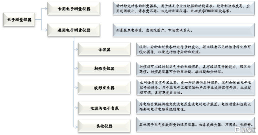 據(jù)弗若斯特沙利文發(fā)布的相關(guān)獨(dú)立市場研究報(bào)告指出,電子測量儀器種類眾多,按照使用領(lǐng)域的不同可分為通用儀器和專用儀器。其中專用儀器應(yīng)用領(lǐng)域較窄,而通用電子測量儀器作為現(xiàn)代工業(yè)的基礎(chǔ)設(shè)備,也是電子工業(yè)發(fā)展和國家戰(zhàn)略性、基礎(chǔ)性重要產(chǎn)業(yè)之一,應(yīng)用場景廣泛且需求量大。
