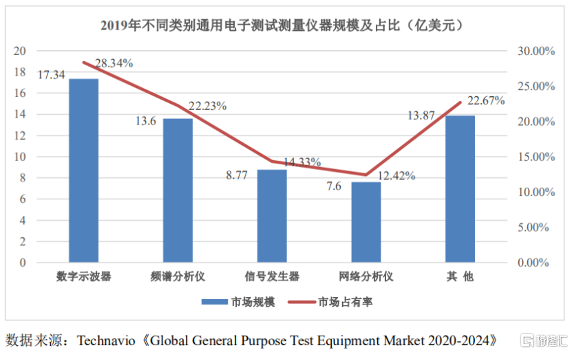再進(jìn)一步分拆來看,鼎陽科技所涵蓋的四大主力產(chǎn)品恰好與通用電子測試測量儀器市場結(jié)構(gòu)高度匹配。