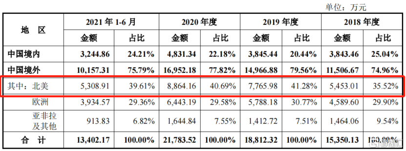 2018-2021年上半年?duì)I收按區(qū)域分布