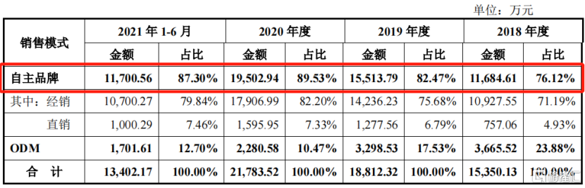 鼎陽創(chuàng)立初起以O(shè)DM模式起家,并開始發(fā)力自主品牌,經(jīng)過多年的渠道建設(shè)和品牌推廣,公司在美國、歐洲和國內(nèi)等地都建立起了較為完善的銷售渠道,并以自主品牌銷售為主導(dǎo),招股書數(shù)據(jù)顯示,2020年自主品牌銷售額占比近九成,現(xiàn)已是絕對(duì)的增收主力。因此,鼎陽也是國內(nèi)極少數(shù)在上述三大主力市場都建立起品牌并實(shí)現(xiàn)規(guī)?;膹S家之一。