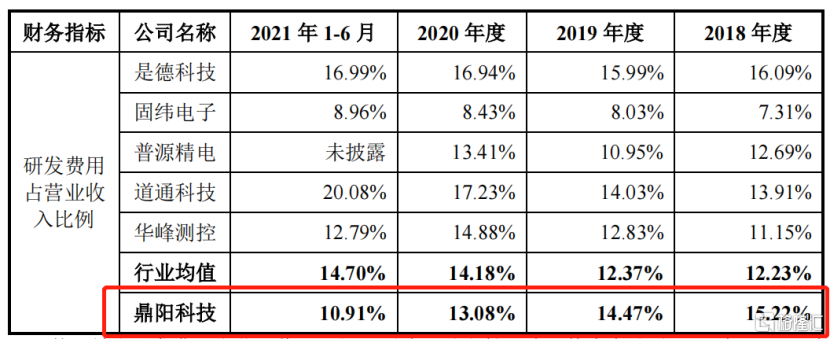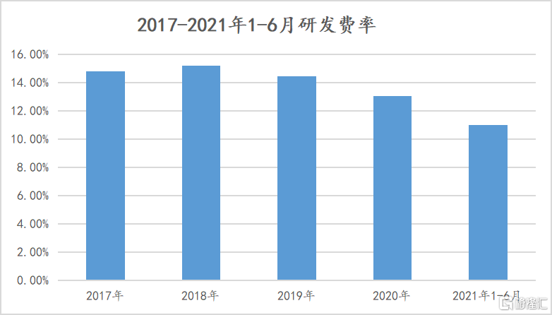 2018-2021年上半年研發(fā)費(fèi)率同業(yè)比較