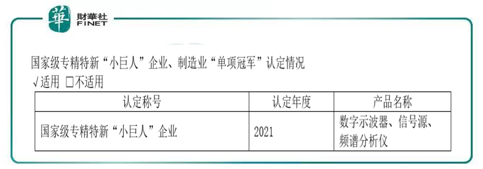 據(jù)公司描述(據(jù)公告),公司是一家研發(fā)驅(qū)動(dòng)型的高新技術(shù)企業(yè),設(shè)立以來(lái)一直專注于通用電子測(cè)試測(cè)量?jī)x器的開發(fā)和技術(shù)創(chuàng)新,公司是數(shù)字示波器、波形和信號(hào)發(fā)生器、頻譜分析儀和矢量網(wǎng)絡(luò)分析儀四大通用電子測(cè)試測(cè)量?jī)x器產(chǎn)品領(lǐng)域唯一一個(gè)國(guó)家級(jí)重點(diǎn)“小巨人”企業(yè),是全球極少數(shù)同時(shí)擁有這四大主力產(chǎn)品的廠家之一。2021年公司四大主力產(chǎn)品占總營(yíng)收比例合計(jì)為80.74%。