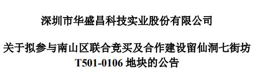 華盛昌擬參與南山區(qū)地塊聯(lián)合競拍,擬向子公司增資6000萬