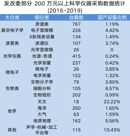 類似核磁共振波譜儀、液質(zhì)聯(lián)用儀、X射線衍射儀的“國貨”占比率,則更是只有可憐的0.99%、1.19%、1.32%。