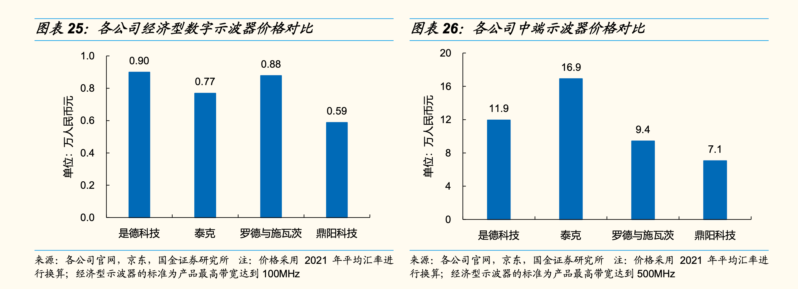 鼎陽科技與歐美巨頭的數(shù)字示波器價格對比 圖片來源:國金證券研報截圖
