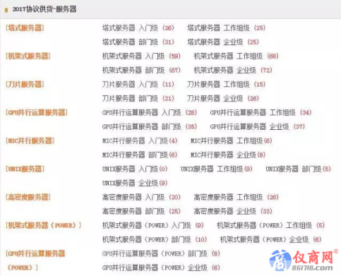 中央政府采購網(wǎng)公布的2017年服務(wù)器協(xié)議供貨名錄