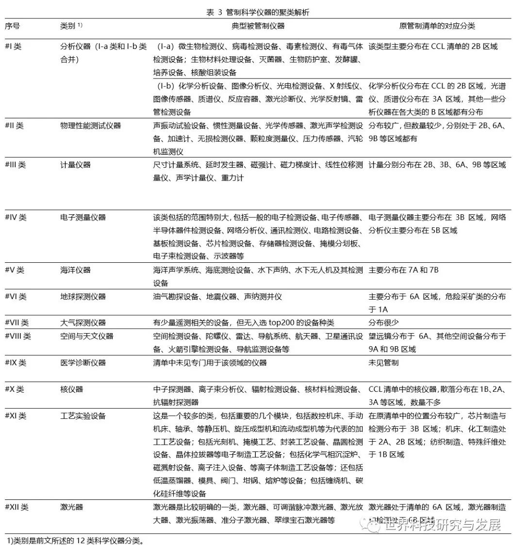 CCL管制科學儀器的聚類分布