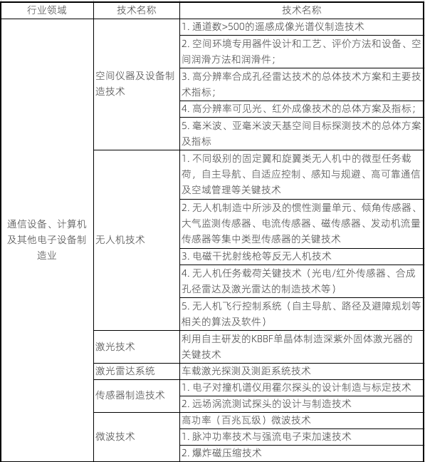 新增的7項技術(shù)分別是:光伏硅片制備技術(shù)、激光雷達系統(tǒng)、用于人的細胞克隆和基因編輯技術(shù)、CRISPR基因編輯技術(shù)、合成生物學技術(shù)、農(nóng)作物雜交優(yōu)勢利用技術(shù)、散料裝卸輸送技術(shù)。