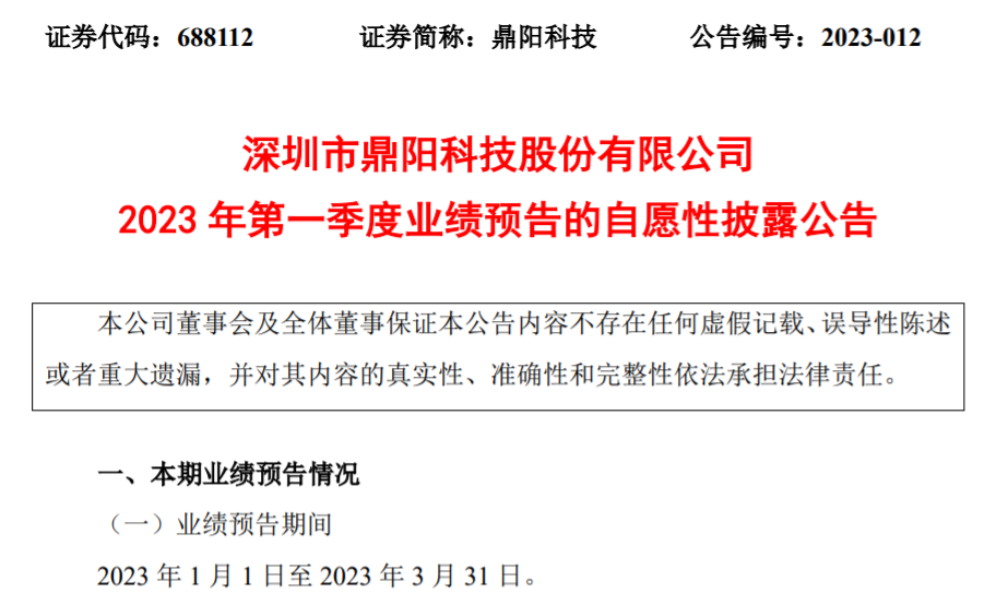 鼎陽科技4月6日晚間發(fā)布業(yè)績預(yù)告,預(yù)計2023年第一季度實現(xiàn)營業(yè)收入為9700萬元到1.16億元,同比增長42.83%到70.81%;預(yù)計2023年第一季度實現(xiàn)凈利潤3100萬元到3720萬元,同比增長54.64%到85.56%。