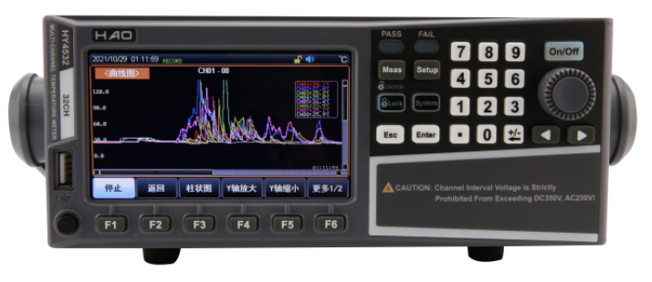 HY4500系列多路溫度測試儀采用4.3寸液晶顯示屏,支持J,K,T,E,S,N,B,R型熱電偶輸入,可同時對多路溫度數據進行采集,具有直觀數值讀數,柱形圖和曲線圖形顯示方式, 使用者可以多方式讀取各參數, 也可以把數據記錄在USB存儲器上,同時儀器也具有上超下超報警和通訊傳輸。其完善的功能、優(yōu)越的性能和操作簡單的特點,能大量滿足生產、實驗室和研發(fā)測量的需求。