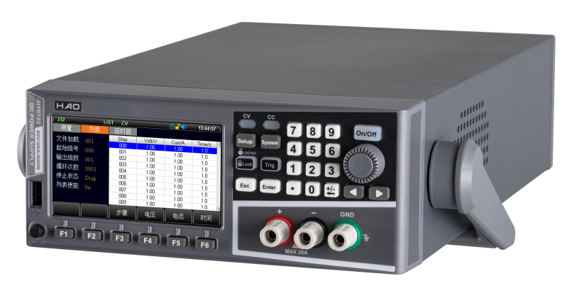 HY6722是一款單路 80V/20A/400W的寬范圍可編程直流電源,具有體積小重量輕低噪聲輸出的特點。產品采用4.3英寸高清LCD顯示屏,設定參數和輸出參數可以同時顯示,簡便了用戶操作。具有遠端補償功能,避免了導線壓降帶來的負載電壓降低的情況;具有過壓過流過溫保護,保證了工作的可靠性。產品具有豐富的通訊接口,包括USB Host、USB Device、LAN、RS232、RS485,支持SCPI/MODBUS通訊協議,方便用戶遠程操作。