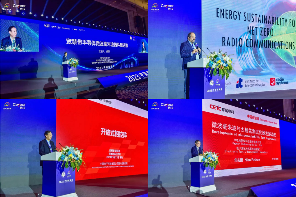 大會報(bào)告精彩紛呈,郝躍院士帶來了“寬禁帶半導(dǎo)體微波毫米波器件新進(jìn)展”報(bào)告,分享了該領(lǐng)域超高頻和毫米波器件的最新進(jìn)展;IEEE-MTT協(xié)會主席Nuno Borges Carvalho教授帶來了“ENERGY sustainability for Net ZERO Radio Communications”報(bào)告,介紹了凈零無線電通信系統(tǒng)的能源可持續(xù)性研究進(jìn)展,重點(diǎn)探討了實(shí)現(xiàn)任意時(shí)間地點(diǎn)能源可持續(xù)的無線電通信新模式;中國電科首席科學(xué)家胡明春分享了“開放式相控陣”針對電子信息系統(tǒng)可擴(kuò)展、可定義、可重構(gòu)的新要求,探討開放式相控陣概念內(nèi)涵、主要架構(gòu)和典型應(yīng)用,探索新一代射頻系統(tǒng)形態(tài);中國電科首席科學(xué)家年夫順“微波毫米波與太赫茲測試儀器發(fā)展動態(tài) ”重點(diǎn)分析了寬帶測量與高速測量、時(shí)域測量與頻域測量、穩(wěn)態(tài)測量與瞬態(tài)測量等熱點(diǎn)測量技術(shù)發(fā)展動態(tài),分享了復(fù)雜電磁環(huán)境模擬與測試評估、線性與非線性網(wǎng)絡(luò)參數(shù)測量與表征、寬頻帶微波同軸測量、太赫茲波導(dǎo)測量等測量儀器研制進(jìn)展,對測試領(lǐng)域內(nèi)未來重點(diǎn)發(fā)展方向提出重點(diǎn)預(yù)測和發(fā)展建議。