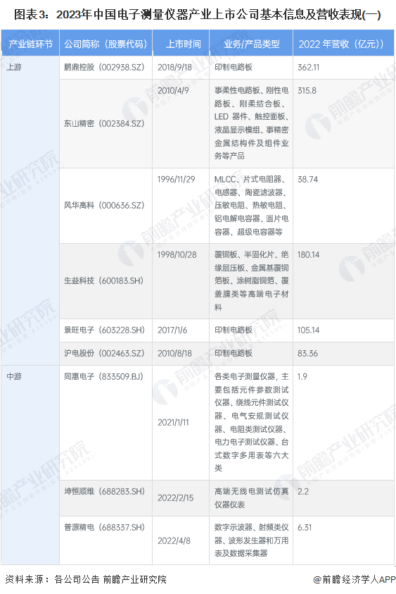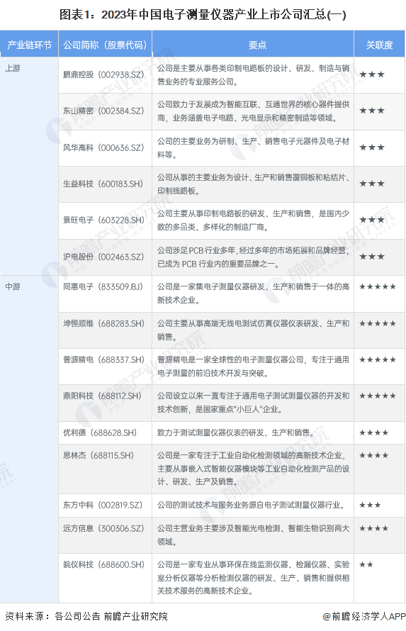 1、中國(guó)電子測(cè)量?jī)x器產(chǎn)業(yè)上市公司匯總:分布在各產(chǎn)業(yè)鏈環(huán)節(jié)