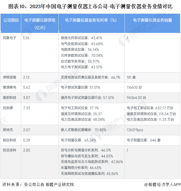 4、中國(guó)電子測(cè)量?jī)x器行業(yè)上市公司業(yè)績(jī)對(duì)比情況