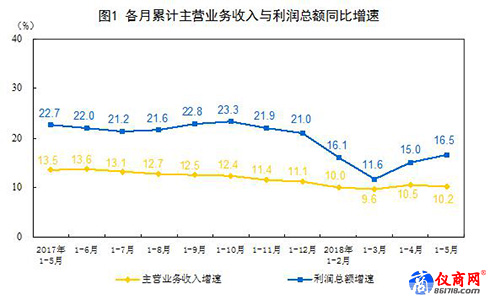 1-5月份,全國(guó)規(guī)模以上工業(yè)企業(yè)實(shí)現(xiàn)利潤(rùn)總額27298.3億元,同比增長(zhǎng)16.5%,增速比1-4月份加快1.5個(gè)百分點(diǎn)。