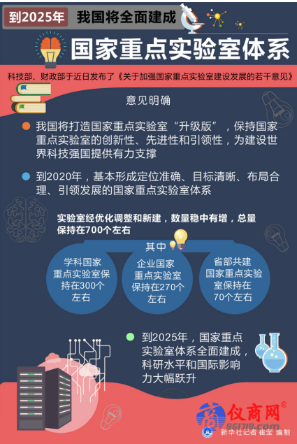 我國將打造國家重點實驗室“升級版”,保持國家重點實驗室的創(chuàng)新性、先進性和引領性,為建設世界科技強國提供有力支撐。到2020年,基本形成定位準確、目標清晰、布局合理、引領發(fā)展的國家重點實驗室體系。實驗室經優(yōu)化調整和新建,數量穩(wěn)中有增,總量保持在700個左右。其中,學科國家重點實驗室保持在300個左右,企業(yè)國家重點實驗室保持在270個左右,省部共建國家重點實驗室保持在70個左右。
