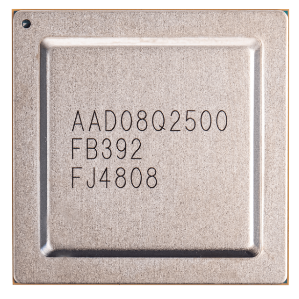 AAD08Q2500是采用Si基工藝制造的高速寬帶模數(shù)轉(zhuǎn)換器。該芯片可將差分600mV輸入模擬信號(hào)轉(zhuǎn)換成 8bit 數(shù)字信號(hào),芯片內(nèi)包含四個(gè)可最高工作在 2.5GS/s 的子 ADC,可工作在交織和非交織模式,配置成四通道、雙通道或單通道,在對(duì)數(shù)據(jù)進(jìn)行2倍解復(fù)用(Demux)之后通過(guò) LVDS 接口輸出。輸出信號(hào)包括 4路時(shí)鐘(8 分頻)、64 路數(shù)據(jù)輸出以及 4 路超量程比特位輸出,均為 LVDS 電平標(biāo)準(zhǔn)。芯片采用+3.3V/+1.8V 電源供電,總功耗約為 8.5W。芯片有 392 引腳,為 Flip Chip-BGA 封裝。